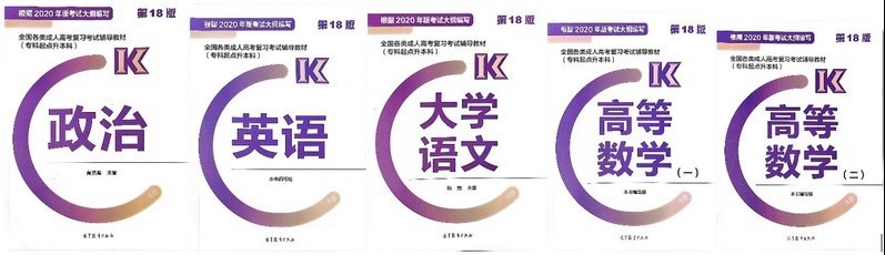 全国成人高考考试辅导教材建议采用高等教育出版社发行的教材,在各大知名网站都有出售。封面样式如下: