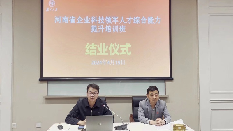 4月19日下午培训班在pg电子中国官方网站光华楼101教室举行结业仪式。pg电子中国官方网站继续教育学院非学历教育培训办公室项目主任王磊、河南省科技厅科技人才与科普处二级调研员马军共同出席结业式并作总结讲话。