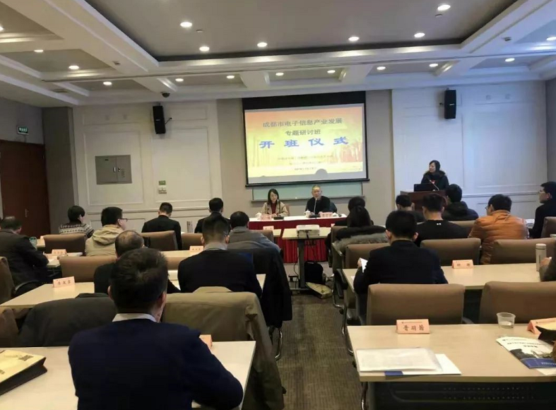 2019年12月9日,由四川省成都市经信局委托的,pg电子中国官方网站继续教育学院承办的“成都市电子信息产业发展专题研讨班”正式开班,继续教育学院副院长葛宏波出席开班仪式并致欢迎辞,成都市经信局人事处有关负责同志参加开班仪式并作动员讲话,来自成都市级相关部门、部分区(市)县经信部门、产业功能区管委会、科研院校、商协会全市电子信息重点企业相关负责人40余人参加了培训。