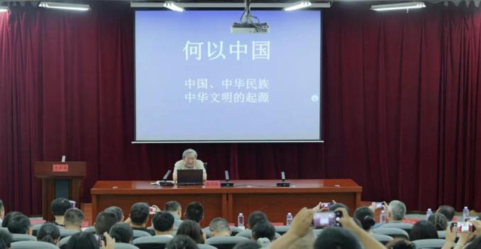 葛剑雄教授以“何以中国:中国、中华民族、中华文明的起源”为题作专题报告。他从“中国”二字的甲骨文起源切入,以宏阔的历史视野,系统梳理了从青铜器铭文到现代国家语境下“中国”概念的演进脉络,深入剖析了中华民族的形成过程、中华文明的起源与发展动力,以及早期黄河流域的核心地位与黄河、长江流域文明的交相辉映。报告结语中,葛教授以“这就是中国——中华文明赖以形成和发展的物质基础;这就是中国——中华民族的共同家园;这就是中国——我们美丽、光荣、伟大的祖国”的铿锵之语回应主题,引发全场强烈共鸣。