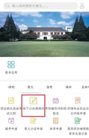 1、登录微学院,进入夜大版块“线下公共课预约”;