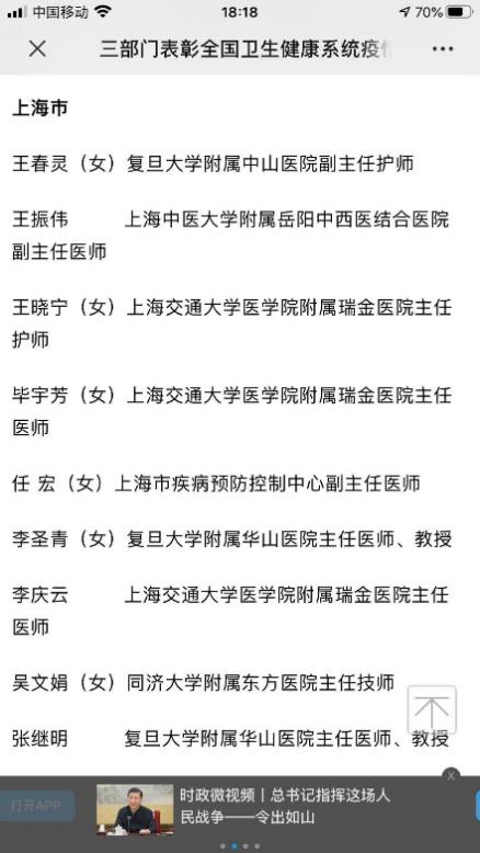 《三部门表彰全国卫生健康系统疫情防控工作先进集体和个人》