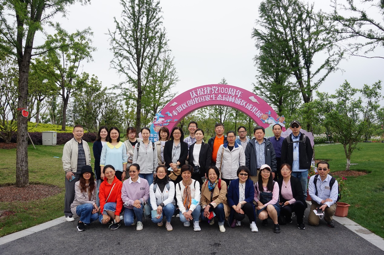下午,教工们来到金海湖区游览奉贤区创建国家生态园林城区成果展和2021年上海(国际)花展奉贤“上海之鱼”会场。作为上海湖面面积第三大的人工湖,其水系将黄浦江和东海相连通,并围绕着泡泡公园、年丰公园、雕塑公园、湖心岛公园等多个各具特色的主题公园。大家漫步其中,或俯身赏花,或远眺湖面,或近观雕塑,充分领略到大自然的美景,感受到艺术、文化、历史的积淀。教工们对奉贤的发展速度之快、变化之大表示惊叹,进一步感受到“敬奉贤人,见贤思齐”的生机与活力,增强了自豪感和责任感。