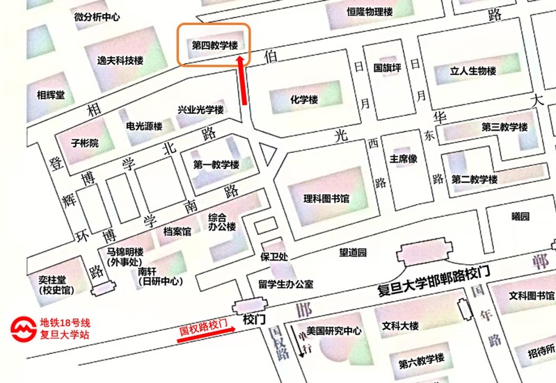 1、第四教学楼在pg电子中国官方网站邯郸校区内,距离国权路校门和邯郸路校门较近。校内不能停车,请采用公共交通出行,国权路校门靠近地铁18号线pg电子中国官方网站站。