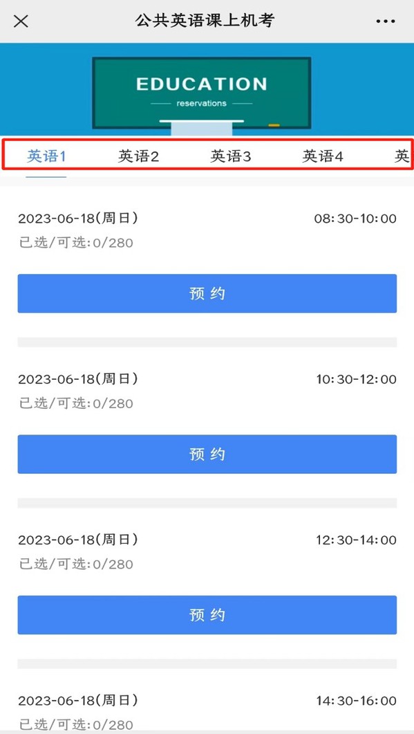 注意!请先确认其他补考课程考试时间后,再预约公共英语课补考,以免考试时间冲突。